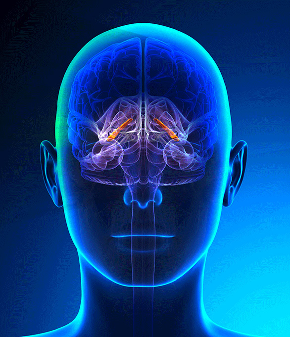 Your Hippocampus sits in the middle part of each Temporal Lobe and is a critical part of your being. Your Hippocampus helps you learn new information and also helps to transition new learning to permanent storage sites in the Cortex.